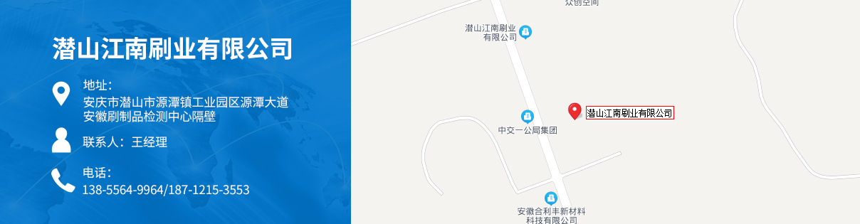 地址:安徽省安慶市潛山市源潭鎮工業園區源潭大道安徽刷制品檢測中心隔壁 營業執照